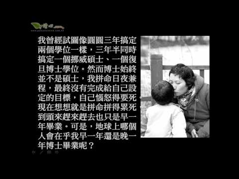 我曾經試圖像圓圓三年搞定兩個學位一樣,三年半同時搞定一個挪威碩士、一個復旦博士學位,然而博士始終並不是碩士,我拼命日夜兼程,最終沒有完成給自己設定的目標,自己惱怒得要死,現在想想就是拼命拼得累死,到頭來趕來趕去也只是早一年畢業。